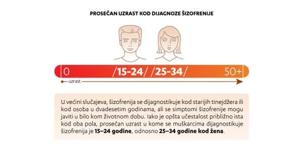 Šizofrenija retko kada počinje pre puberteta, dok u odraslom dobu učestalost šizofrenije naglo raste. Ova bolest pogađa i muškarce i žene (u odnosu 1,4:1). U većini slučajeva, šizofrenija se dijagnostikuje kod starijih tinejdžera ili kod osoba u dvadesetim godinama, ali se simptomi šizofrenije mogu javiti u bilo kom životnom dobu.